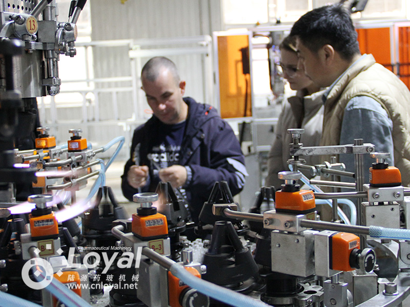 西林瓶生產(chǎn)線包括:自動上管、自動成型、經(jīng)機(jī)械手轉(zhuǎn)換至前端檢測線(也叫生產(chǎn)管控)、檢測線檢測的項目:1、瓶口內(nèi)外徑 2、瓶身長短 3、瓶身外徑 4、瓶口邊厚 5、瓶底內(nèi)凹尺寸檢測;經(jīng)檢測后的合格品再用機(jī)械手夾盤轉(zhuǎn)換至退火爐網(wǎng)帶上,經(jīng)高溫減除應(yīng)力后再降溫,通過氣動吸盤將回火后的小瓶轉(zhuǎn)換至后端檢測線,后端檢測(也是重檢也叫終檢),經(jīng)后端拍照檢測項目